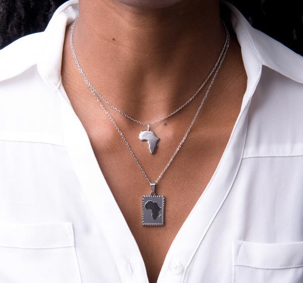 Frame of Africa Necklace + Map of Africa Necklace in Silver